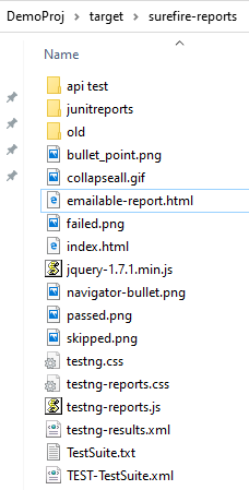 Upon successful execution of the project, a surefire-report gets generated under the 'target->surefire-report' folder of the project's root directory.