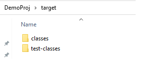 The 'target' folder contains 'classes' and 'test-classes' folders.